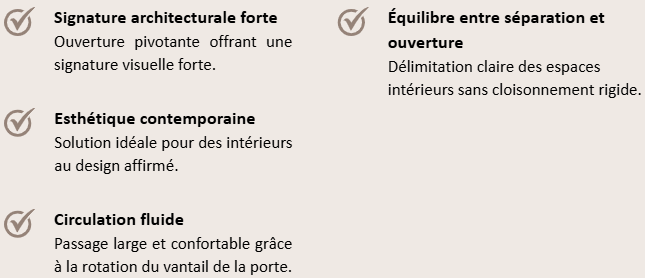 La verrière HOME à porte pivotante repose sur un principe d’ouverture central ou déporté, apportant une dimension architecturale affirmée. Elle combine transparence, mouvement et caractère, tout en s’intégrant dans l’espace avec élégance.