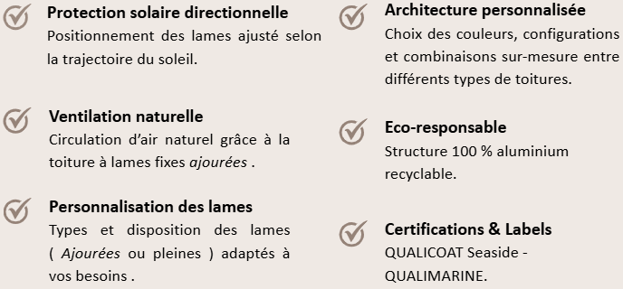 Type de toiture : Lames fixes en aluminium ajourées