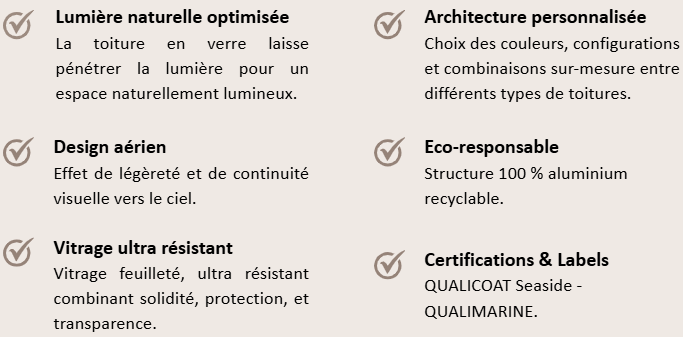 Type de toiture : Panneaux en verre feuilleté